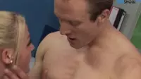 The climactic work encounter started in the corner office on a stormy day.The blonde colleague, with her stunning curves and an insatiable hunger for pleasure, was waiting for her partner to arrive.As soon as the dude entered, his eyes immediately focused on her alluring figure.It wasnt long before the tension built up between them, making the atmosphere in the office almost unbearable.They began by passionately kissing each other, their lips intertwined and mouths locked onto one another.Their tongues danced and caressed each others, increasing the intensity of their passion and lust.The dude, overwhelmed with desire, started fingering the blonde colleague through her tight clothing, exploring her sensitive spots and causing her to moan in pleasure.With the office door wide open and a thrilling fear of being caught, they continued to tease each other even more.Finally, they decided it was time for things to get more intense, so they both undressed, baring their naked bodies before one another.Their hands roamed freely on each others skin, touching every inch that made the other one quiver in anticipation.The blonde woman then started to lick and suck on her partners erect dick, feeling him growing harder with each passing second.The dude couldnt resist but to enjoy this blowjob, thrusting his hips forward to deepen the oral pleasure.Meanwhile, the blonde colleagues own pussy was growing increasingly wet from her horny desires.As the tension mounted between them, the climax approached.Their bodies intertwined in a passionate embrace, and she began riding him on top.The desk in the office acted as their playground, with both of their cunts and dicks smashing into one another while they screamed out their pleasure in ecstatic agony.Her tight pussy wrapped around his dick like a vice, milking it for every last drop of cum.Once they both reached the point of no return, the blonde woman felt her body convulse in an orgasm that she thought would never end, leaving her breathless and gasping for air.Her labia trembled with pleasure, and the dude released a torrent of sperm all over her pussy lips, coating them in his seed.The climactic work encounter ended with a facial, their faces covered in sweat and passion as they relished each others taste on their skin.Despite it being an office setting, the sexual encounter was far from professional.It was raw, passionate, and uninhibited, a true embodiment of what a climactic work affair should be like.As they left the office, both still flushed with excitement and adrenaline, they knew they had shared something that would stay with them for years to come.
