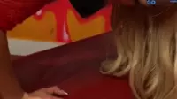 In the dark and steamy room, a stunning woman with golden curls cascading down her back stands before a man, their eyes meeting in an instant connection.She has curves that entice him while his hard body promises power.Her desire is apparent as she starts undressing, revealing her sensual stockings underneath red lingerie, setting the tone for what will come next.With her eyes fixated on him, she drops to her knees and eagerly wraps her lips around his big cock, slurping noisily as she enjoys the taste and texture.His hand grips her head, guiding her movements with passion and urgency as he starts to thrust into her warm mouth.As their intensity builds up, he decides to switch things up.He grabs her by the waist, lifts her onto his cock and holds her tight against him.Their bodies meld into one, each groaning in pleasure as she takes him balls deep inside her pussy.Their lips meet in a fervent kiss, sharing their passion as their fingers explore sensitive areas.As their pace increases, he reaches around to play with her clit and slutty pussy, her moans of desire fill the air as his cock hits the right spot.They are completely lost in each other, bodies swaying rhythmically while she continues to suck on his balls, drawing him deeper into this wild ride.His thrusts become more powerful and dominating, demanding more of her submission.She loves it.With every thrust, her clit becomes more engorged with desire and she feels itching close.Her cunt swells wanting more.The pleasure is intense yet addictive for both participants, as her body aches with the need to cum.Their moans escalate, their movements grow frantic and they finally reach the point of no return.As she feels the familiar tickling sensation of an orgasm, his nuts tighten up, preparing to unleash his load on her clit.His face contorts with pleasure as he surrenders, splashing her face with a warm facial that triggers an explosive release from within her.They collapse onto the bed, breathless but forever changed by this encounter, their eyes locking in knowing glances - both fully satisfied yet craving more.As they drift off into slumber, the heat of their passion lingers in the air.Little did they know that this was only a beginning, a never-ending journey of pleasure awaits them.